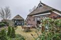 via de eigen oprit komt u bij de vrijstaande, rietgedekte garage waarin u de auto kunt parkeren. Tevens is dit de opbergplaats voor tuinbenodigdheden. Via een loophekje komt u in de fraaie aangelegde tuin met een terras aan de achterzijde van de woning. Ook bevindt zich een rietgedekt tuinhuis aan deze zijde van de woning met een prachtig uitzicht op de landerijen en op de eigen tuin. Voor de liefhebbers van tuinieren is er een kleine kas waar u bijvoorbeeld tomaten zelf kunt kweken! Bij de vijver is een heerlijk terras gesitueerd, voorzien van een elektrisch zonnescherm en is middels een schuifpui vanuit de woonkamer te bereiken. Aan de voorzijde van de woning staat een prachtige wilg die in de zomer voor natuurlijke schaduw zorgt.